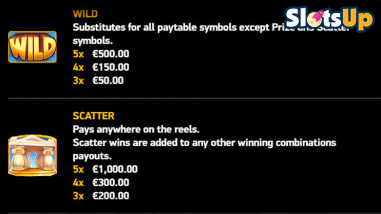 Ainutlaatuisista symboleista puheen ollen, niitä on kolme: Wild, Scatter ja kolikot. Kolmas Go High Olympus -symboli on syy välittömiin voittoihin, ja niiden arvo riippuu pelaajan panoksesta.