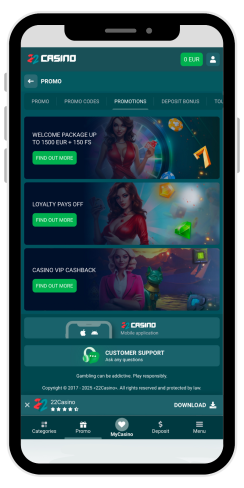 Etkö ole kiinnostunut 22casino-bonuksista?