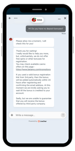 Erittäin reagoiva tuki - Live-chat muodostaa yhteyden välittömästi, ja viesteihin vastaavat oikeat agentit, eivät botit.