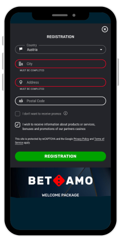 Pystyin rekisteröitymään helposti ja nopeasti. Haluan kuitenkin varoittaa kaikkia pelaajia siitä, että seuraavat vaiheet on suoritettava huolellisesti, ja kaikki tiedot on syötettävä virheettömästi. Kun tiedot on lähetetty, niitä ei voi muokata tililläsi. Syötin seuraavat tiedot Betamo-kasinon kirjautumiseen ja sivuston käyttämiseen: