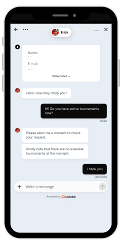 Live Chat -agentit vastaavat välittömästi ja antavat nopeita ja selkeitä vastauksia kaikkiin kysymyksiin. Kaiken kaikkiaan voin sanoa, että BetChan-kasinon tukipalvelu toimii hyvin.