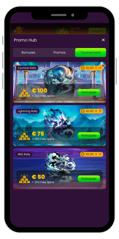 Jos et ole kiinnostunut Bizzo-bonuksista, vieraile SlotsUpin listauksissa löytääksesi maassasi saatavilla olevat bonukset ja suodata ne mieltymystesi mukaan.