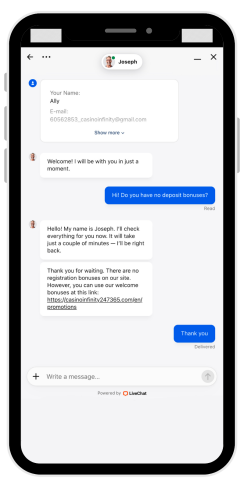 Kävelläksesi Casino Infinity-sivustolla sinun on oltava vähintään 18-vuotias, kuten alueen Yhdysvallat laki ja Casino Infinity ehdot edellyttävät