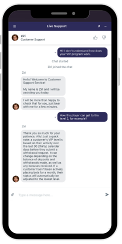 VIP-ohjelmaan kuuluu 5 tasoa. Jokainen uusi pelaaja aloittaa tasolla 1. Jokaisen uuden tason myötä pelaajat saavat pääsyn käteispalautuksiin, korkeammat nostorajat ja henkilökohtaisen tilinhoitajan.