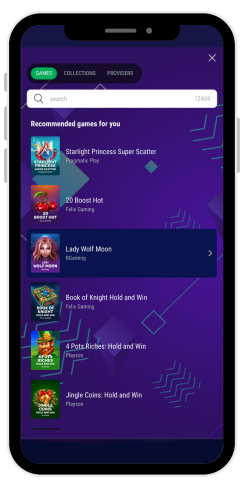 Pelaajille, jotka nauttivat monipuolisuudesta - pelejä on 111 tarjoajalta, mikä on valtava valikoima, ja aulassa voit suodattaa nimien, tarjoajien tai kuratoitujen kokoelmien mukaan.