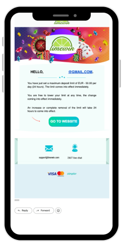Tätä Limewinin arvostelua valmistellessani en löytänyt erillistä yhteydenottosivua. Käyttöehdoissa näin tukisähköpostin, jota käytin myöhemmin useita kertoja pyyntöjeni lähettämiseen. Sähköpostituki vastaa muutamassa tunnissa, mikä on yleensä normaalia useimmilla kasinoilla.