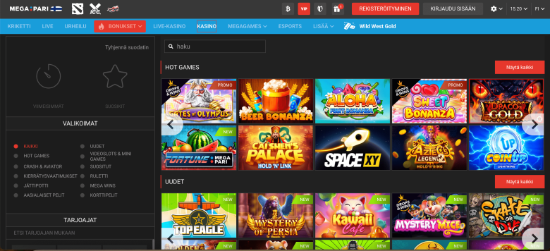 Ottaen huomioon pelikokoelman ja optimoinnin suomalaisille, voimme myös suositella Megapari Casinoa. Se toimii ALSI-112310012-F15-lisenssillä ja takaa turvallisen pelaamisen paikallisille pelaajille. Luotettavuudesta kertovat myös useat palkinnot, kuten EGR Nordics Nominee 2024. Sivuston kieliluetteloon kuuluu suomi, joka säätyy automaattisesti sijaintisi mukaan. Alhainen 1 euron talletus voidaan käsitellä kryptojen, sähköisten lompakoiden tai paikallisten suomalaisten pankkien, kuten Aktia Bankin ja Handelsbankenin, korttien kautta. Kun olet tallettanut, pääset käsiksi kaikkiin suosittuihin kolikkopeleihin ja pöytiin. Minimipanos, joka vaihtelee 0,01 €:sta 0,10 €:iin, antaa sinulle mahdollisuuden pelata parhaita pelejä jopa 1 €:n pelikassalla. Näitä pelejä ovat Gates of Olympus, Sweet Bonanza, Space XY ja muut suosikit.