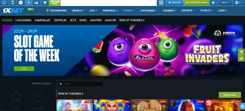 Koska 1xBet on suunnattu urheiluvedonlyöntiin, se hyväksyy myös suomalaiset pelaajat ja tarjoaa alhaiset 1 euron talletusrajat. Edellisten sivustojen tavoin tällä sivustolla on myös suomenkielinen kielivaihtoehto ja se säätää tiedot sen mukaisesti. Kolikkopelien osalta sivusto tarjoaa laajan valikoiman matalan panoksen pelejä, kuten Sugar Rush, Big Bass Splash, Candy Blitz Bombs ja Crash-pelejä, kuten Spaceman. Lisäksi sivustolla on laaja valikoima urheilu- ja esports-vedonlyöntivaihtoehtoja. Kelojen yläpuolella olevassa valikossa on kätevä suodatin, jonka avulla löydät nopeasti sellaiset crash-pelit kuin Zeppelin, JetX ja Aviatrix. Siksi sivusto soveltuu sekä euron että krypton 1 euron maksuille. Olipa kyseessä sitten paikallisen suomalaisen pankin kortti tai Bitcoin, maksutapahtumasi on nopea ja maksuton. Lisäksi nautimme iOS- ja Android-sovelluksista testatessamme 1xBetiä.