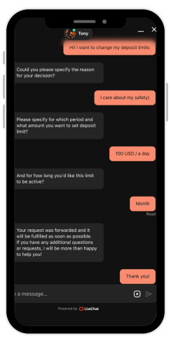 Vastuullisen pelaamisen työkalut toimivat kuten luvattiin - tappiorajoitus asetettiin heti pyyntöni jälkeen.
