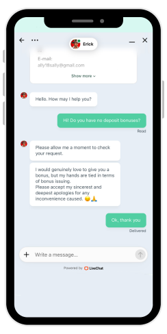 Välitön live-chat - agentit vastaavat nopeasti ja tukevat monia pääkieliä.